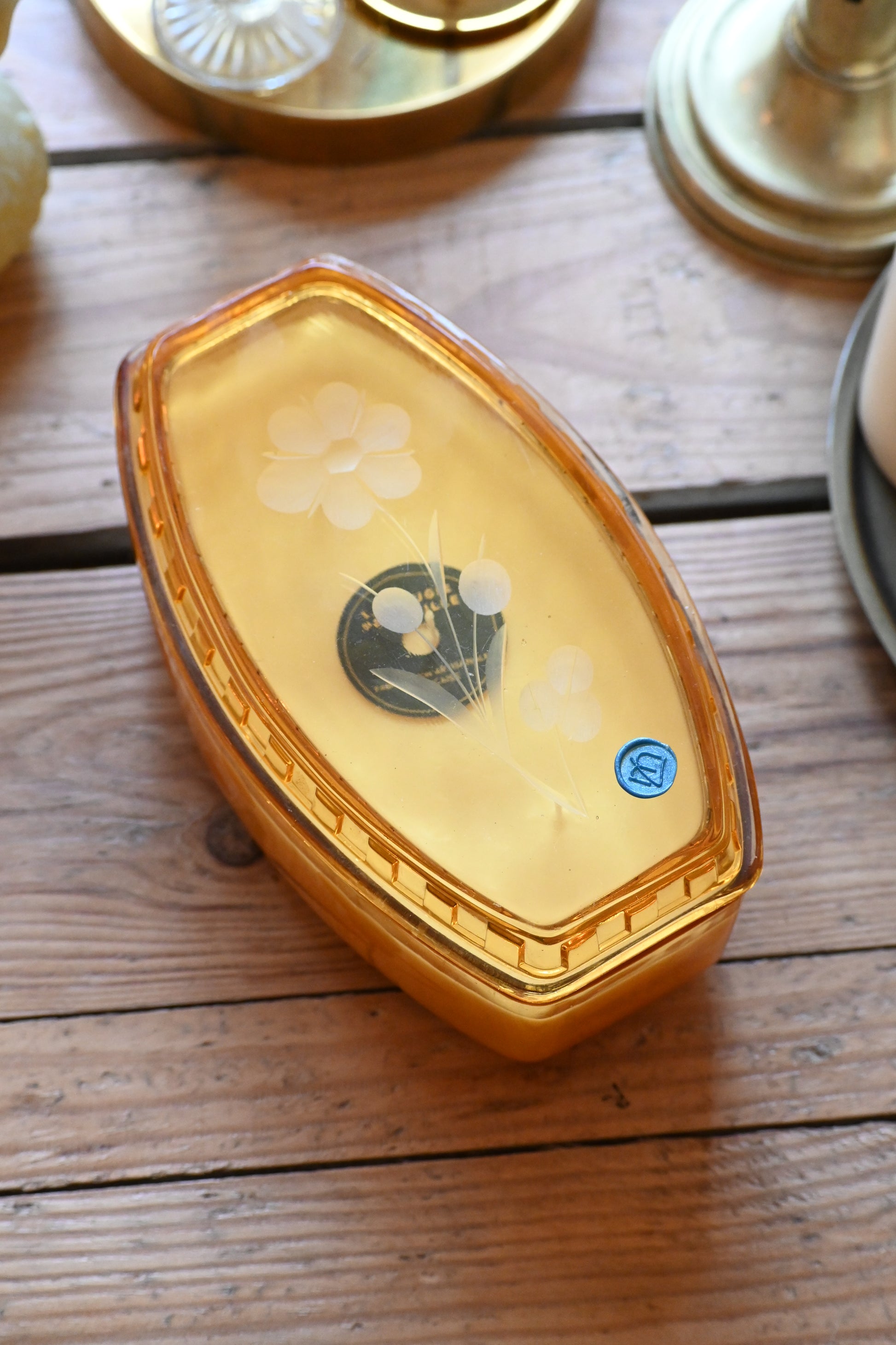 Boite en verre ciselé orange