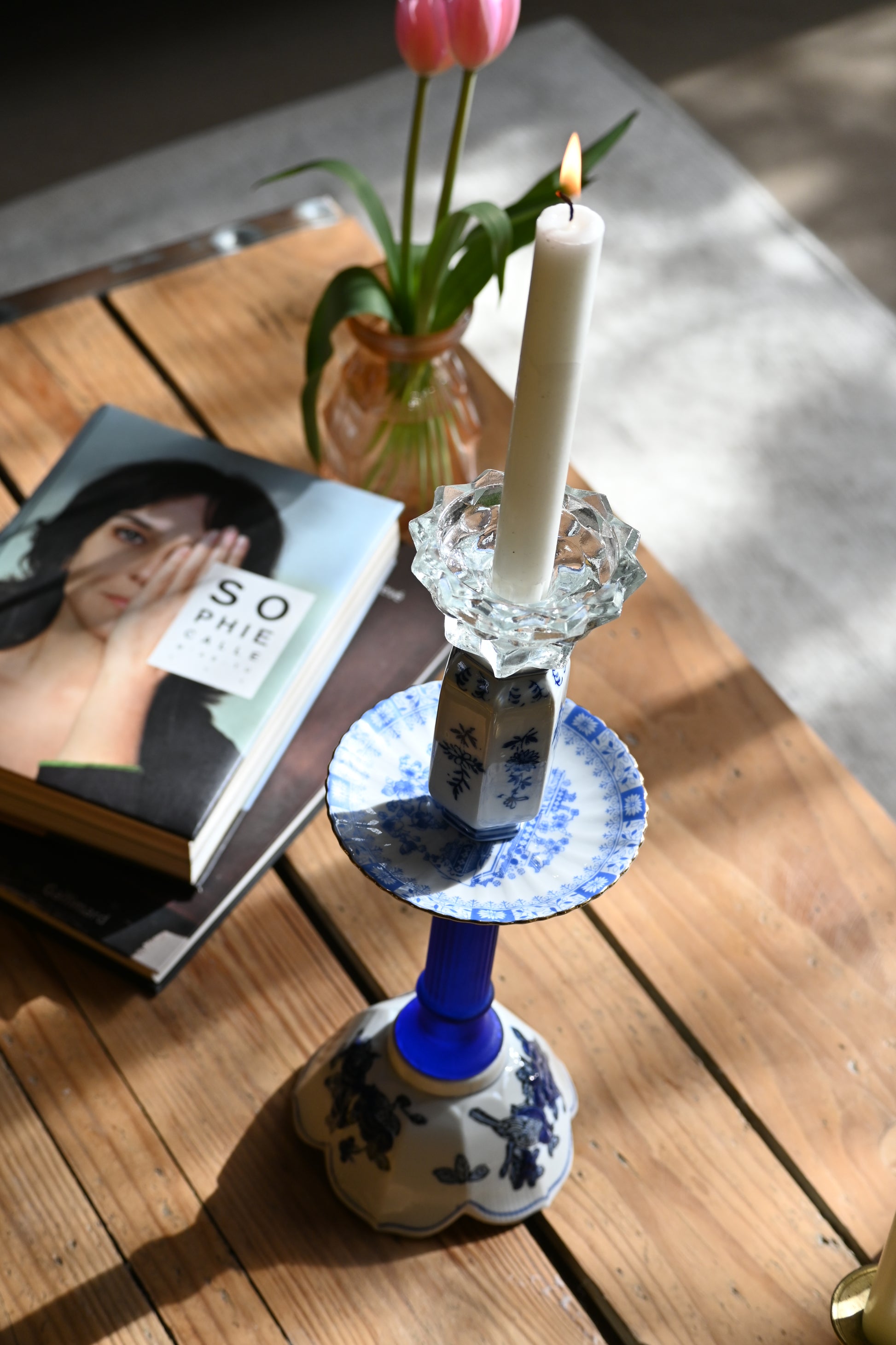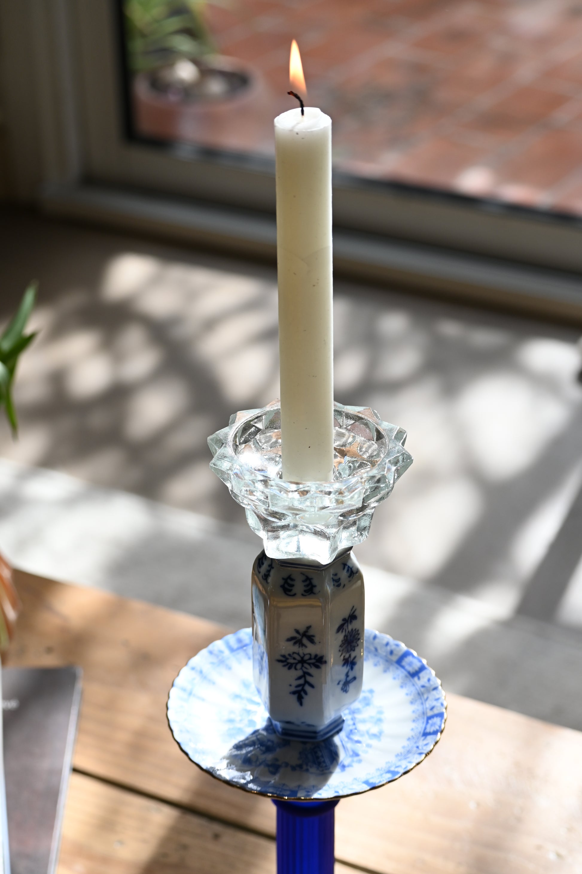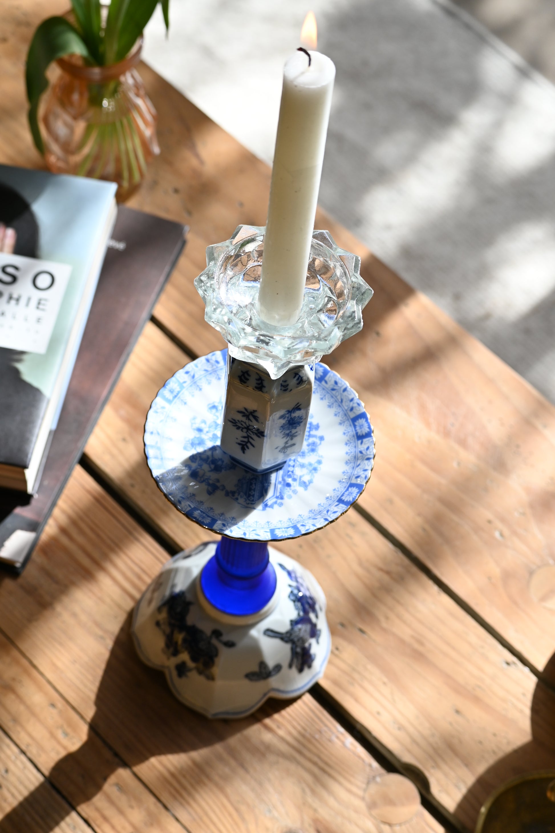 Né d'une accumulation de vaisselle dans les tons de bleu, ce bougeoir sublimera votre décoration avec singularité.