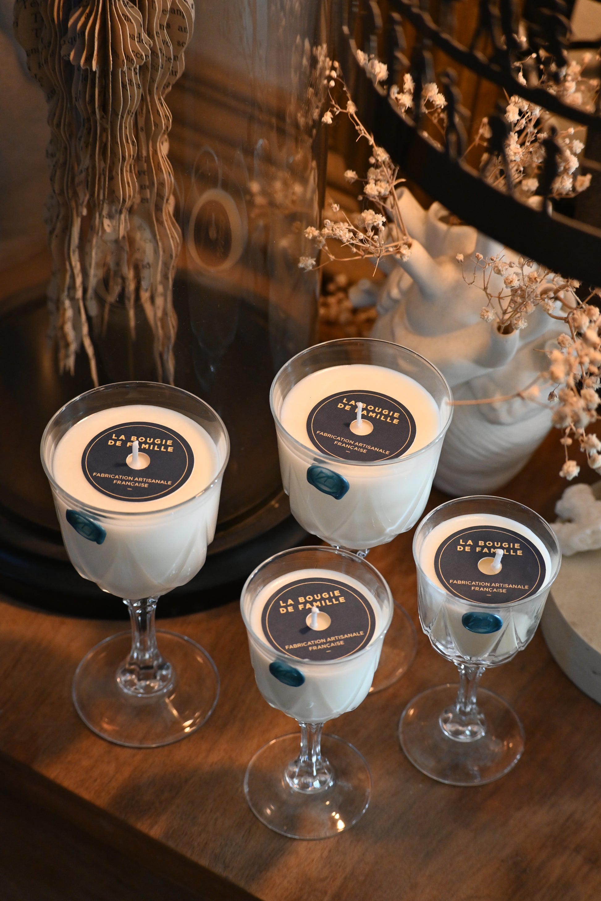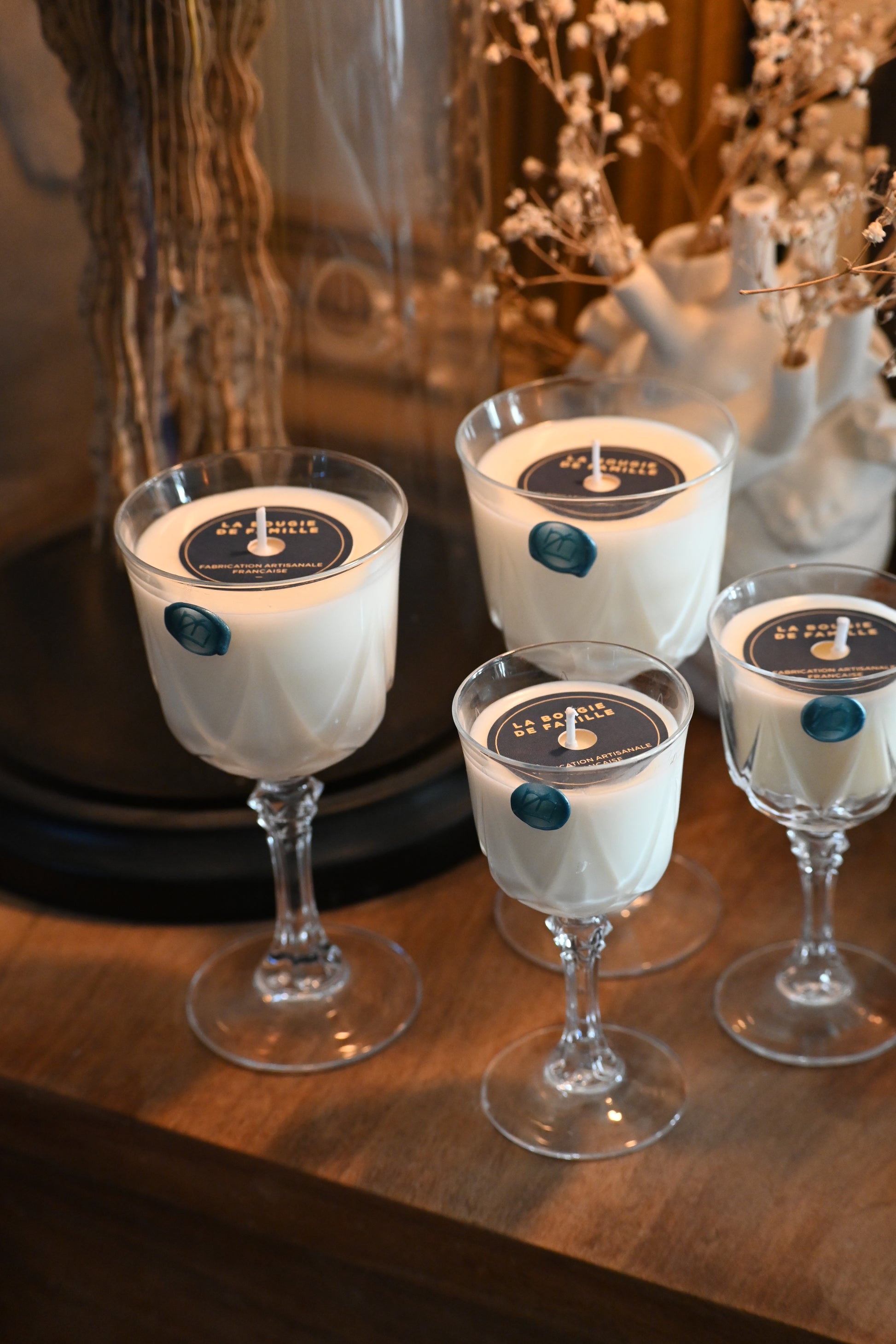 Bougie coulée dans un petit verre à digestif en cristal, idéal pour agrémenter et illuminer vos tables de fête ou vos beaux dîners. Une fois terminé il pourra rejoindre votre service à digestifs.