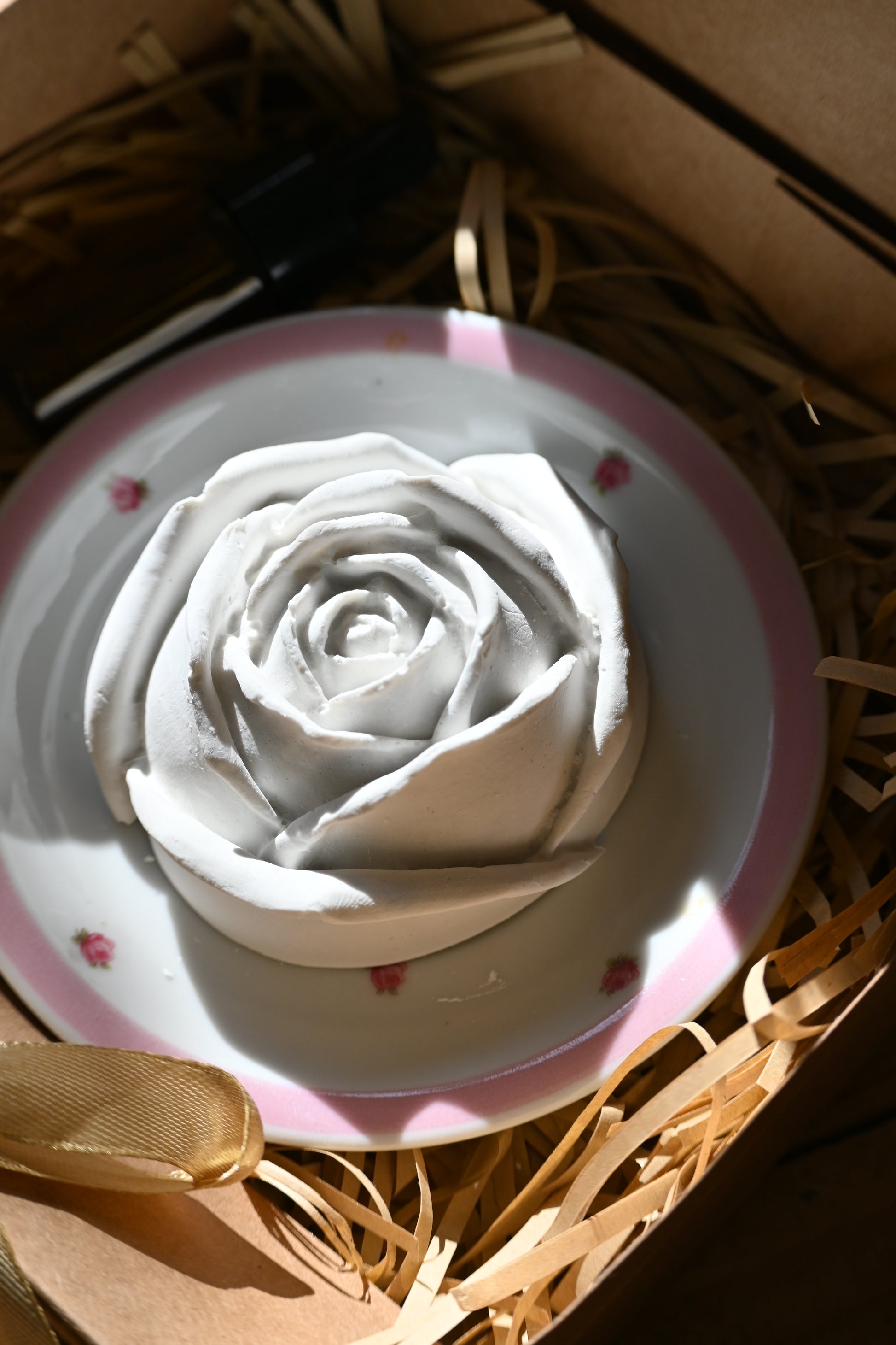 Le coffret comprend : une fleur, un flacon de parfum de 10 ml et une coupelle en porcelaine offerte (modèle aléatoire)
