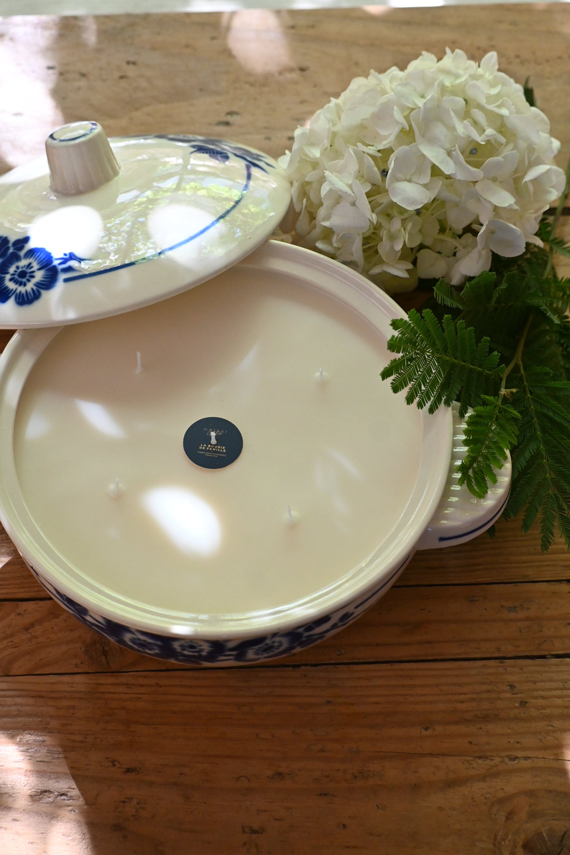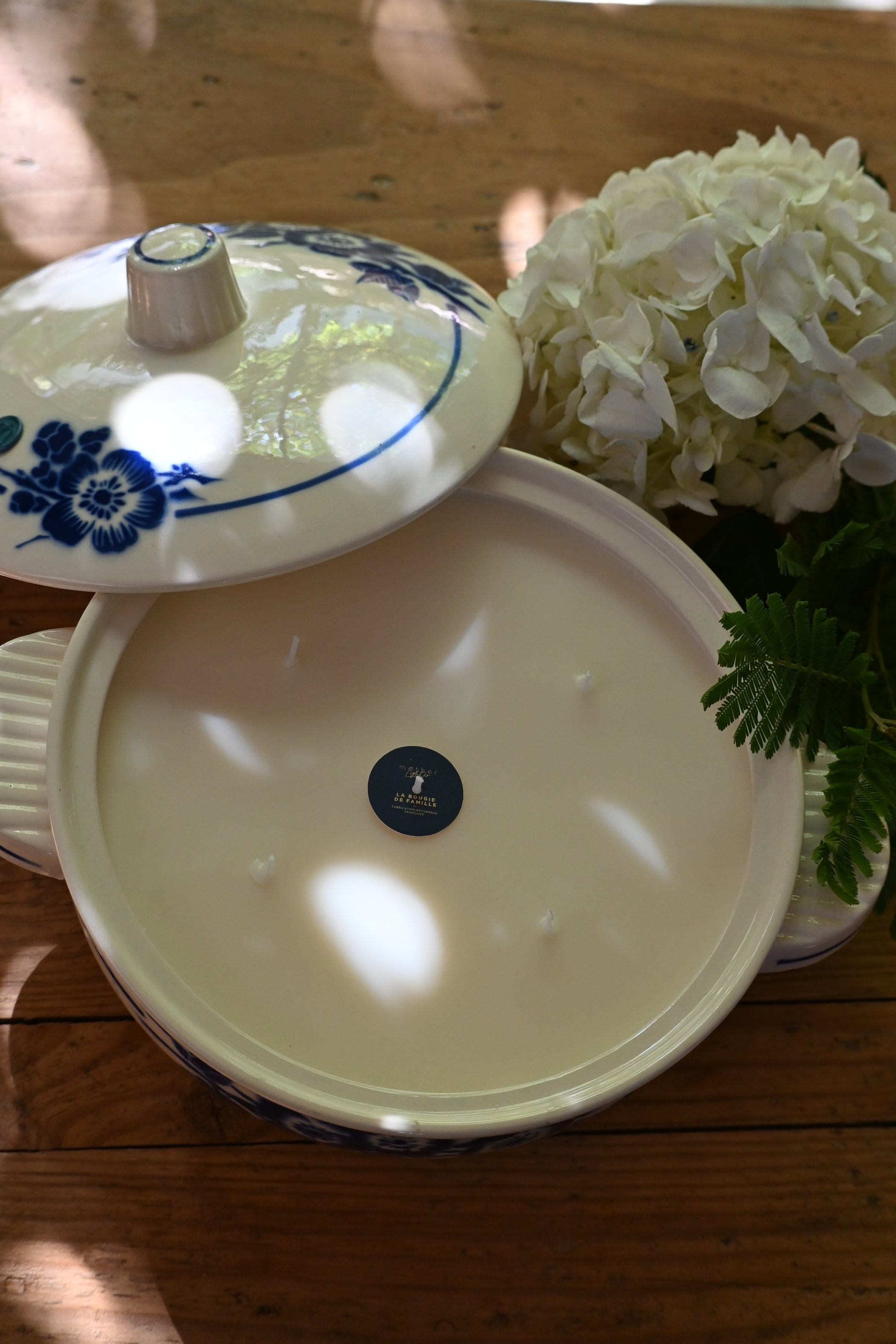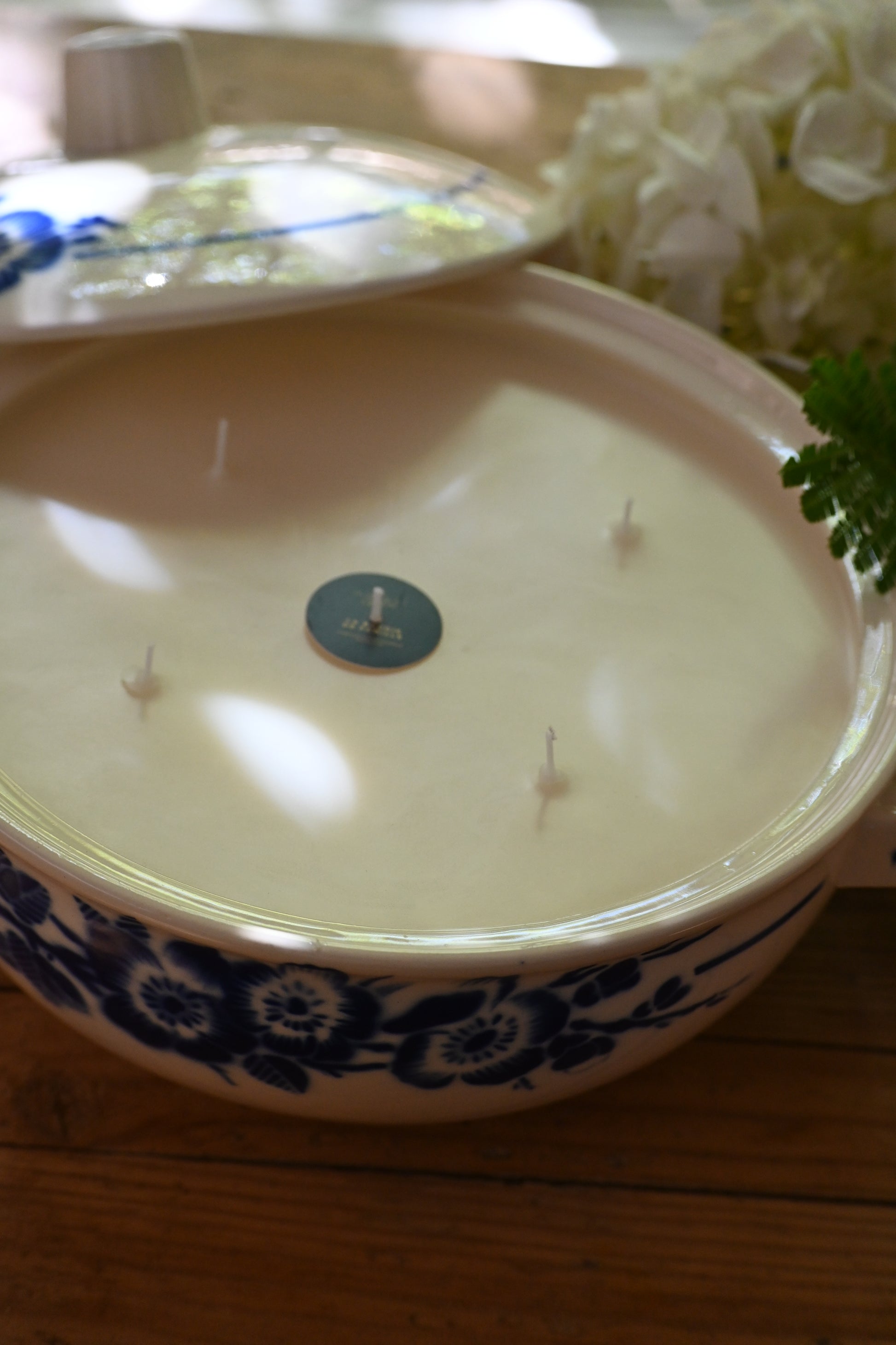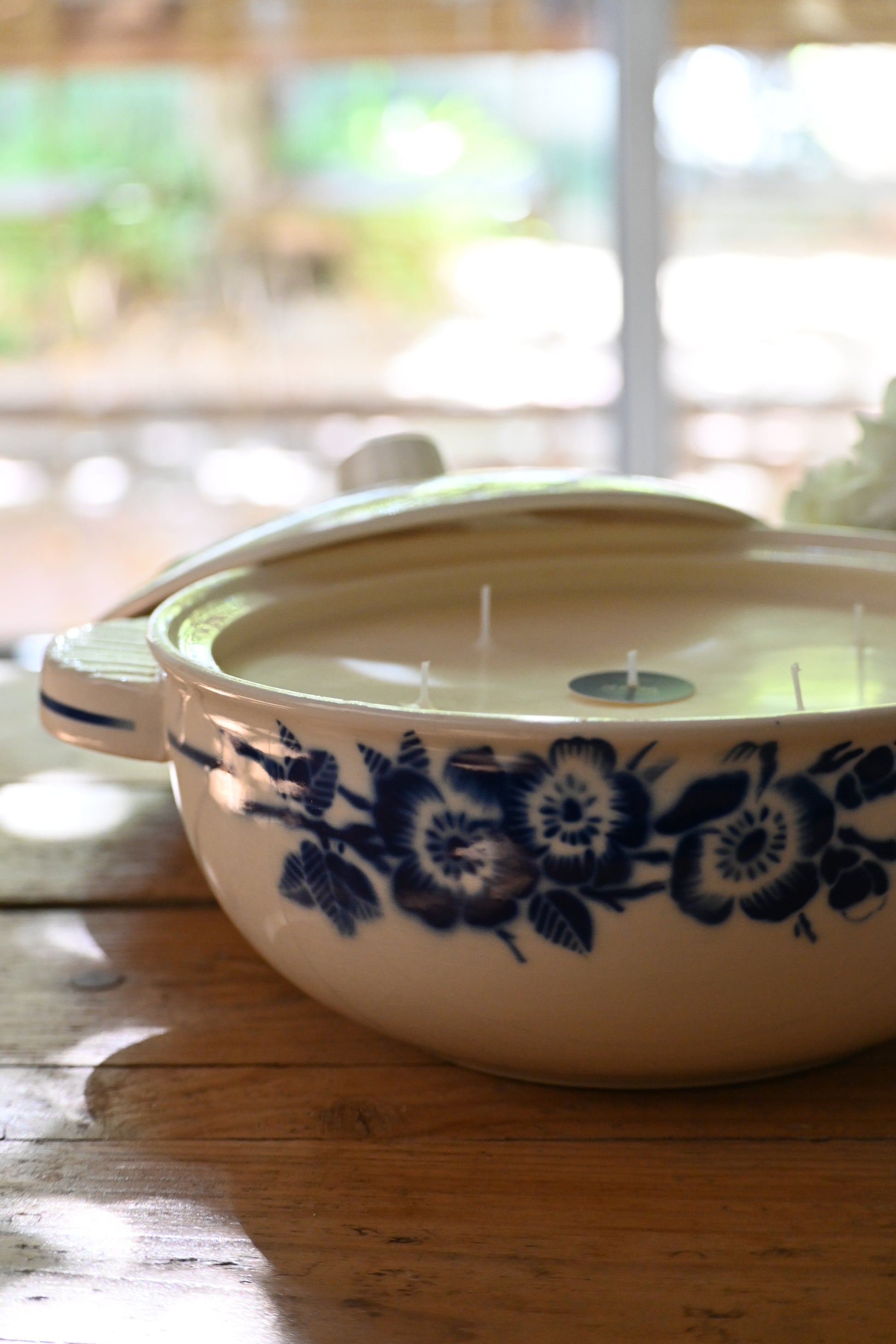 Bougie coulée dans une petite soupière décorée de fleurs de pavots. Une fois terminée elle sera parfaite pour rejoindre votre vaisselle et servir vos convives.