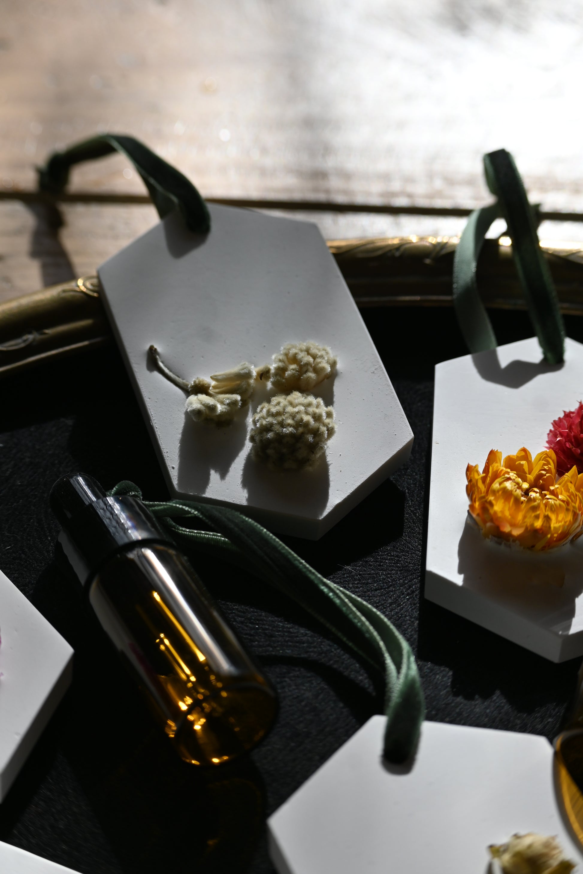 Élégante et délicatement parfumée, la tablette diffuse un sillage raffiné dans les petits espaces: placard, entrée, couloir ou voiture. Sublimée d’un cordon en velours pour la suspendre avec grâce, elle se ravive à l’aide de sa fiole pipette fournie, pour prolonger durablement le plaisir du parfum.